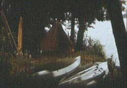 Nachtlager auf einer kleinen Insel im Wangnitzsee. Unser Abendbrot angelten wir uns. Wir tauften das Eiland auf den Namen "Goldbrandinsel". Warum Wohl? |