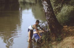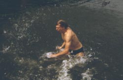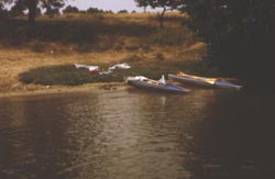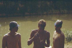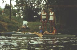 Nach ihrer Eskimorolle von letzter Nacht begutachten die "Künstler" den Schaden an ihrer Ausrüstung. Die Biere im FDGB-Ferienparadies Granzow oder besser "Mallorca für Arme" waren wohl doch zuviel für die Mannschaft. |