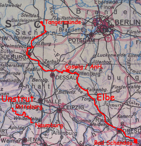 Die Elbevon Bad Schandau über Coswig und Magdeburg nach Tangermündeund ihre Nebenflüsse Unstrut, Saale und später Andere |