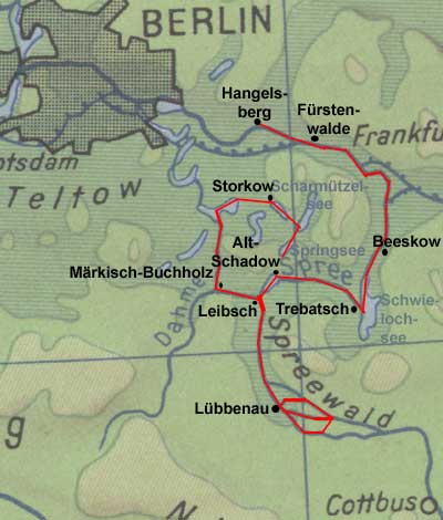 die Spree über Leibsch, Trebatsch, Beeskow, über