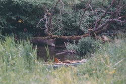 knapp unter der Wasserober-fläche sowie umgestürtzte Bäume
